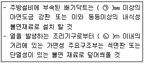 59. 소방기본법령상 일반음식점에서 조리를 위하여 불을 사용하는 설비를 설치하는 경우 지켜야 하는 사항 중 다음 ( ) 안에 알맞은 것은?