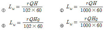 26. 펌프에 의하여 유체에 실제로 주어지는 동력은? (단, Lw는 동력(kW), r는 물의 비중량(N/m3), Q는 토출량(m3/min), H는 전양정 (m), g는 중력가속도(m/s2)이다.)