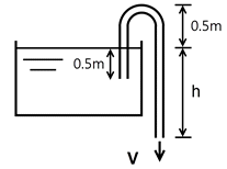 25. 그림과 같은 사이펀에서 마찰손실을 무시할 때, 사이펀 끝단에서의 속도(V)가 4m/s이기 위해서는 h가 약 몇 m이어야 하는가?