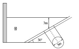 26. 그림과 같이 수족관에 직경 3m의 투시경이 설치되어있다. 이 투시경에 작용하는 힘(kN)은?