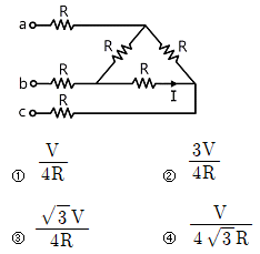 78. 그림과 같이 결선된 회로의 단자 (a, b, c)에 선간전압 V(V)인 평형 3상 전압을 인가할 때 상전류 I(A)의 크기는?