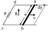 16. 자속밀도 B(Wb/m2)의 평등 자계 내에서 길이 ℓ(m) 인 도체 ab가 속도 v(m/s)로 그림과 같이 도선을 따라서 자계와 수직으로 이동할 때, 도체 ab에 의해 유기된 기전력의 크기 e(V)와 폐회로 abcd 내 저항 R에 흐르는 전류의 방향은? (단, 폐회로 abcd 내 도선 및 도체의 저항은 무시한다.)