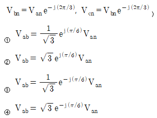 79. 결선의 평형 3상 회로에서 선간전압 Vab와 상전압 Van의 관계로 옳은 것은? (단,