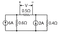 75. 회로에서 0.5Ω 양단 전압(V)은 약 몇 V인가?