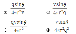 5. q(C)의 전하가 진공 중에서 v(m/s)의 속도로 운동하고 있을 때, 이 운동방향과 θ의 각으로 r(m) 떨어진 점의 자계의 세기(AT/m)는?