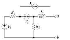 78. 회로망 출력단자 a-b에서 바라본 등가 임피던스는? (단, V1=6V, V2=3V, I1=10A, R1=15Ω, R2=10Ω, L=2H, jω=s 이다.)