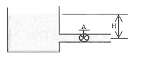 30. 그림과 같이 매우 큰 탱크에 연결된 길이 100m, 안지름 20cm인 원관에 부차적 손실계수가 5이 밸브 A가 부착되어 있다. 관 입구에서의 부차적 손실계수가 0.5, 관마찰계수는 0.02이고, 평균속도가 2m/s 일 때 물의 높이 H(m)는?