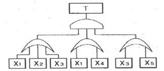 25. 그림과 같이 FTA로 분석된 시스템에서 현재 모든 기본사상에 대한 부품이 고장난 상태이다. 부품 X1부터 부품 X5까지 순서대로 복구한다면 어느 부품을 수리 완료하는 순간부터 시스템은 정상가동이 되겠는가?