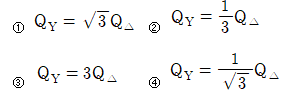 27. 3상 전원에 접속된 △결선의 커패시터를 Y결선으로 바꾸면 진상 용량 QY(kVA)는? (단, QY는 △결선된 커패시터의 진상 용량이고, QY는 Y 결선된 커패시터의 진상 용량이다.)