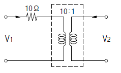 77. 그림과 같이 10Ω의 저항에 권수비가 10:1의 결합회로를 연결했을 때 4단자 정수 A, B, C, D는?