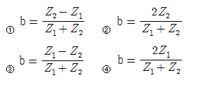 26. 서지파(진행파)가 서지 임피던스 Z1의 선로측에서 서지임피던스 Z2의 선로측으로 입사할 때 투과계수(투과파전압÷입사파 전압) b를 나타내는 식은?