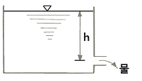 22. 그림과 같이 수조의 밑 부분에 구멍을 뚫고 물을 유량 Q로 방출시키고 있다. 손실을 무시할 때 수위가 처음 높이의 1/2로 되었을 때 방출되는 유량은 어떻게 되는가?
