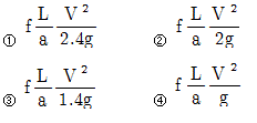 28. 직사각형 단면의 덕트에서 가로와 세로가 각각 a 및 1.5a이고, 길이가 L이며, 이 안에서 공기가 V의 평균속도로 흐르고 있다. 이때 손실수두를 구하는 식 으로 옳은 것은? (단, f는 이 수력지름에 기초한 마찰계수이고, g는 중력가속도를 의미 한다.)