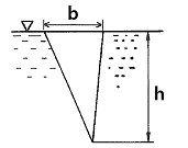 21. 그림과 같은 삼각형 모양의 평판이 수직으로 유체 내에 놓여 있을 때 압력에 의한 힘의 작용점은 자유표면에서 얼마나 떨어져 있는가? (단, 삼각형의 도심에서 단면 2차모멘트는 bh3/36이다.)