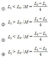 14. 서로 결합하고 있는 두 코일 C1과 C2의 자기인덕턴스가 각각 LC1, LC2라고 한다. 이 둘을 직렬로 연결하여 합성인덕턴스 값을 얻은 후 두 코일간 상호인덕턴스의 크기(M)를 얻고자 한다. 직렬로 연결할 때, 두 코일간 자속이 서로 가해져서 보강되는 방향의 합성인덕턴스의 값이 L1 서로 상쇄되는 방향의 합성 인덕턴스의 값이 l2일 때, 다음 중 알맞은 식은?