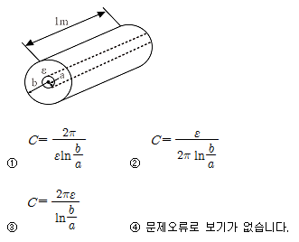 18. 그림과 같은 길이가 1m인 동축 원통 사이의 정전용량[F/m]]은?