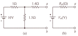 데브난의 정리를 이용하여 그림(a)의 회로를 그림 (b)와 같은 등가회로로 만들고자 할 때 Vth(V)와 Rth(Ω)은?