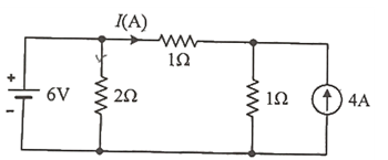 회로에서 저항 1Ω에 흐르는 전류 I(A)는?
