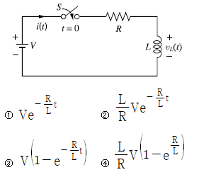 그림의 회로에서 t=0(s)에 스위치(S)를 닫았을 때 인덕터(L) 양단의 전압 vL(t)는?