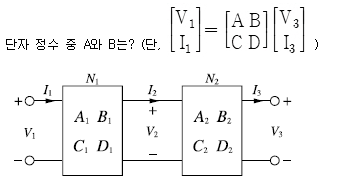 4단자 정수가 각각 A1, B1, C1, D1과 A2, B2, C2, D2인 2개의 4단자망을 그림과 같이 종속으로 접속하였을 때